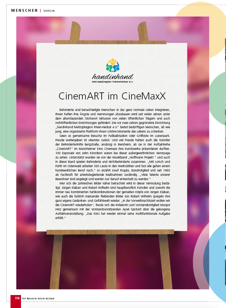Danke, liebe Gaby, für den tollen vierseitigen Bericht über unser erstes CinemART im CineMaxX Mannheim.