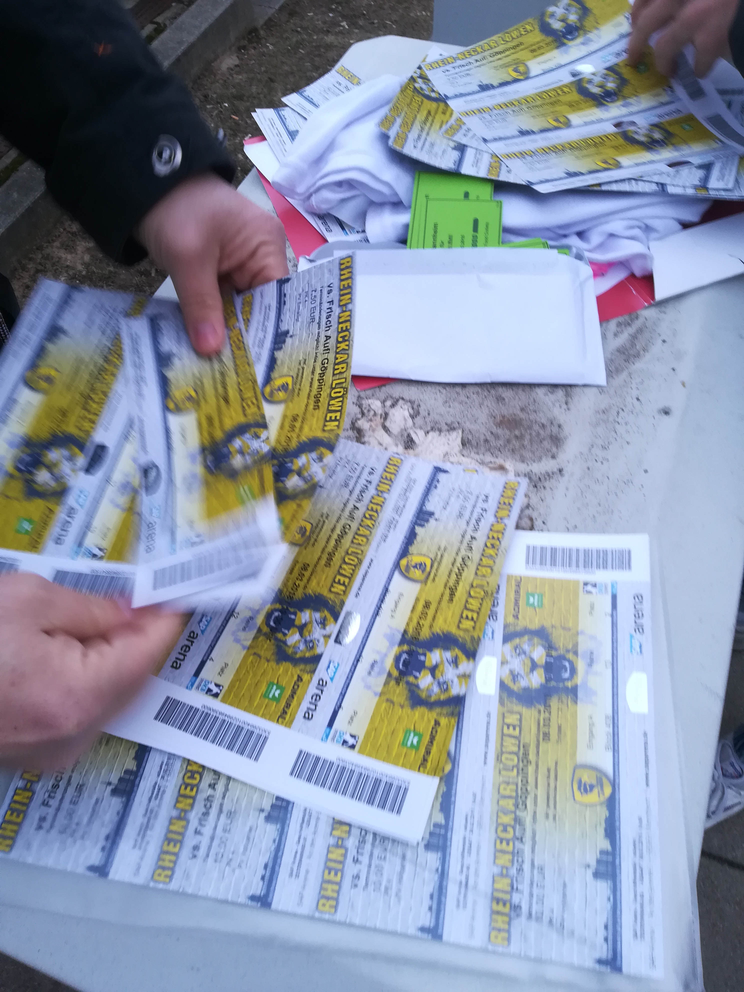 DANKE an die Helfer um Projektleiter Nico Walter, die da waren: Astrid Baumann, Claude Schmidt, Nikolai Graf-Rüssel und Roman Walter. Ebenso an Sebastian Grüne von den Rhein-Neckar Löwen für den reibungslosen Ablauf rund um die Tickets und Nina Heidenreich von Food Affairs für den Spezialpreis für die Getränke in der Arena.